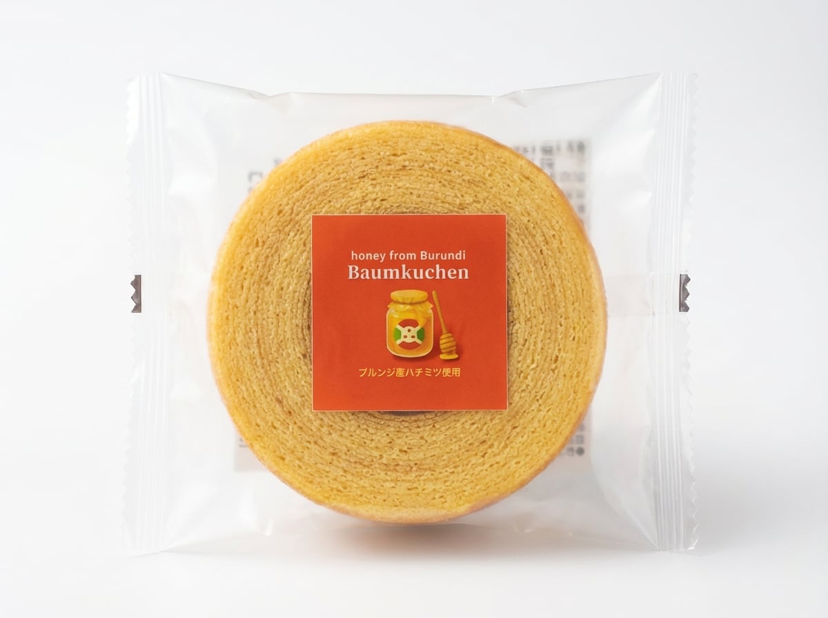 華やかな花の香りが広がる、ブルンジ産はちみつを贅沢に使用。バームクーヘンの優しい甘さに奥行きを与えます。最後の一口まで心地よくコーヒーとの相性も抜群です。